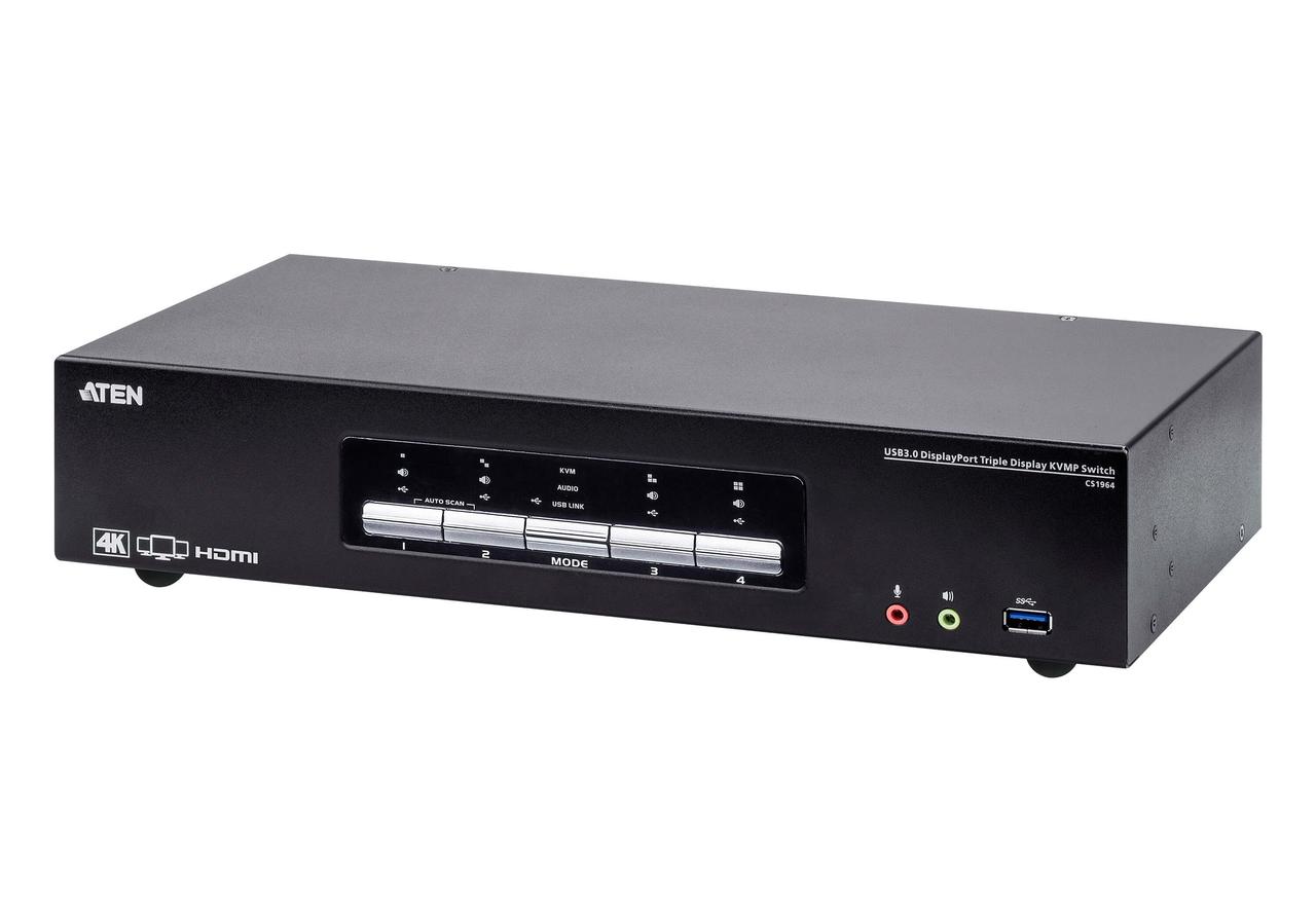 ATEN CS1964 4-портовый 4K KVMP™-переключатель с поддержкой трех дисплеев и интерфейсом USB3.0, DisplayPort
