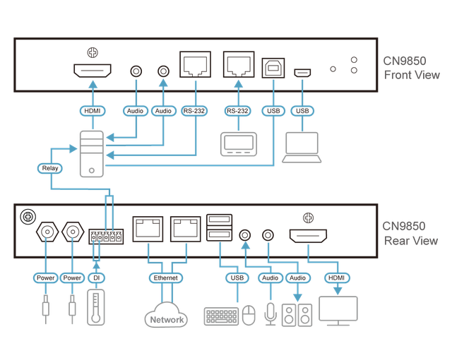 CN9850 оснащен встроенным 5-контактным терминальным разъемом управления. Он предназначен для входящего цифрового (DI) соединения, позволяющего отслеживать системные предупреждения (от термометра, датчика влажности / двери), а также релейного соединения для работы функции виртуального включения. С ее помощью можно удаленно перезагрузить ПК/сервер, на котором произошел сбой или зависание, обеспечивая постоянную доступность системы, используемой в критически важных применениях.